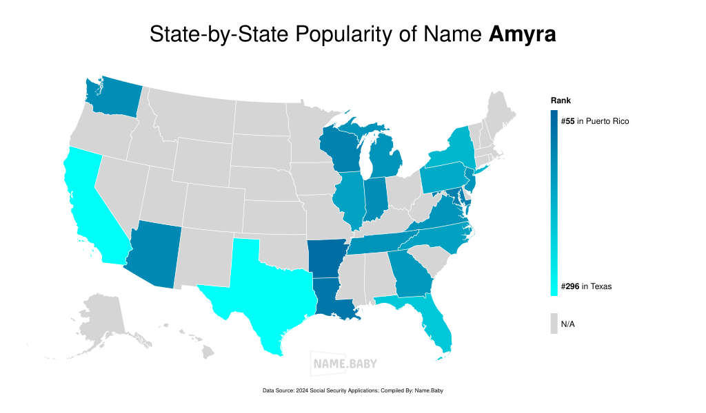 Amyra is the kind of name that slips into a room like a warm breeze off the Caribbean coast—quick, bright, and impossible to ignore. Born from the Arabic root “Amira,” it carries the regal meaning of “princess” or “leader,” yet in the hands of creative parents it picked up a playful y, danced across cultures, and found a second voice in English where it can be heard as either ah-MEE-rah or the jazzier uh-MY-ruh. Picture her journey: a desert moon glinting on sapphire sands, a quick hop onto a Spanish galleon, and suddenly she’s sashaying through modern playgrounds, tiara slightly askew, laughter floating like maracas. In the U.S. charts Amyra has been climbing steadily, leaping from just a handful of births in the ’90s to a sprightly 267 little queens in 2024—still rare enough to feel boutique, yet familiar enough to roll off the tongue. With royal roots, cross-cultural rhythm, and a touch of salsa sparkle, Amyra promises a life story written in bold, sun-kissed strokes.