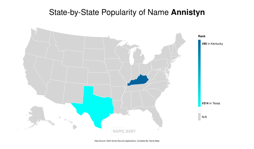 Annistyn (pronounced AN-i-stin) is a bright-eyed, modern daughter of the English surname Aniston, with an extra “y” tossed in like confetti for flair. Born from Hollywood stardust—thank you, Jennifer Aniston—and a dash of Southern charm courtesy of Anniston, Alabama, the name feels both red-carpet-ready and front-porch-friendly. In ancestry it skims back to old English place-names meaning “Agnes’s town,” but Annistyn has since traded cobblestones for roller skates. A newcomer who isn’t shy, she inched onto the U.S. charts in 2006 and has been humming upward ever since, landing at No. 887 in 2024. Parents love her zesty rhythm and nickname-ready heart (“Anni,” “Styn,” even “Sunny”), making Annistyn the verbal equivalent of a sunrise—fresh, upbeat, and just rare enough to make roll-call sparkle.