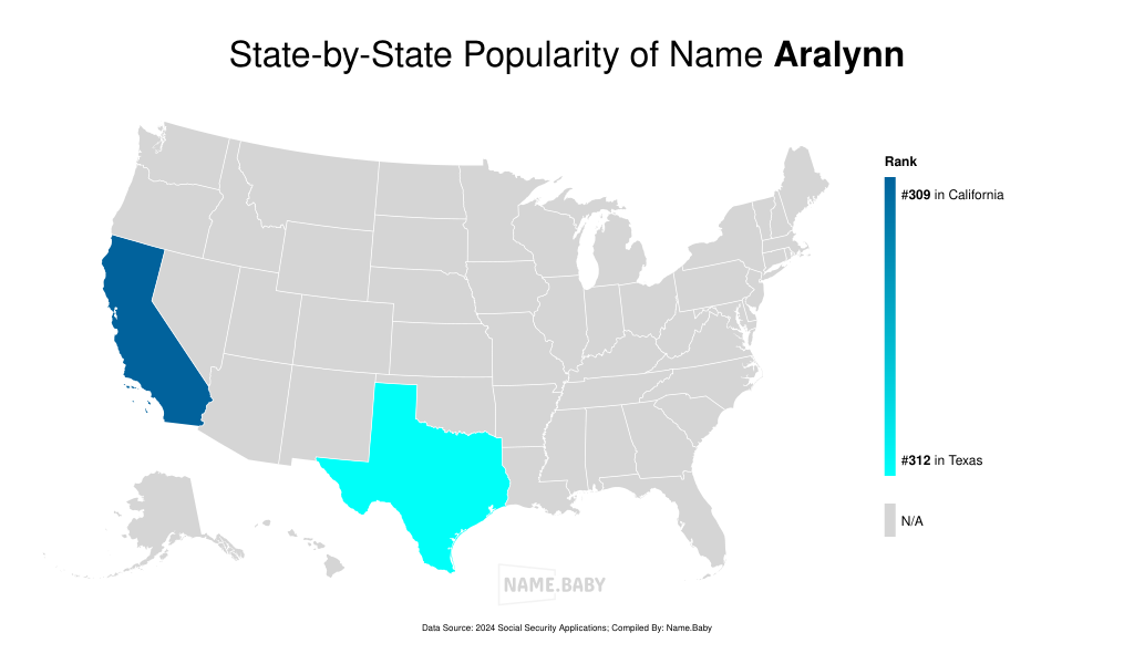 Aralynn is a modern American name that unites the element Ara—linked either to the Hebrew Ariel (“lion of God”) or to Celtic roots meaning “beautiful”—with the Welsh-derived Lynn, signifying “lake,” yielding a two-syllable name (AIR-uh-lin) that balances strength with tranquility. It first entered the U.S. top 1,000 in 2003 and climbed steadily to its peak rank of 861 in 2013 before settling in the low 900s; in 2024, 49 newborn girls were given the name, placing it at rank 901. This measured adoption appeals to parents seeking a choice that is neither ubiquitous nor entirely unfamiliar. With its clear pronunciation and absence of celebrity overexposure—Aralynn has yet to be commandeered by a pop-culture fad—it maintains a quietly distinctive character well suited to an era that values originality grounded in tradition.