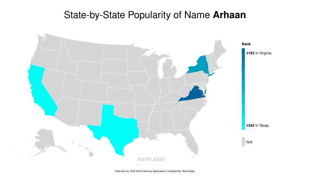 Arhaan is a masculine name of Hindi and Sanskrit origin, commonly interpreted as “ruler” or “one worthy of praise,” and carries complementary connotations of righteousness in Arabic contexts. Pronounced ar-HAHN (/ɑrˌhɑn/), it combines a concise phonetic structure with an air of regal authority. US Social Security Administration records trace its entry into the Top 1000 back to 2008, with rankings fluctuating between 857 and 909 and 50 recorded births placing it at 874 in 2024. It may not supplant perennial standbys like James or Michael, but its steady position highlights a measured Anglo-American interest in names that offer cultural resonance alongside clear, technical precision.