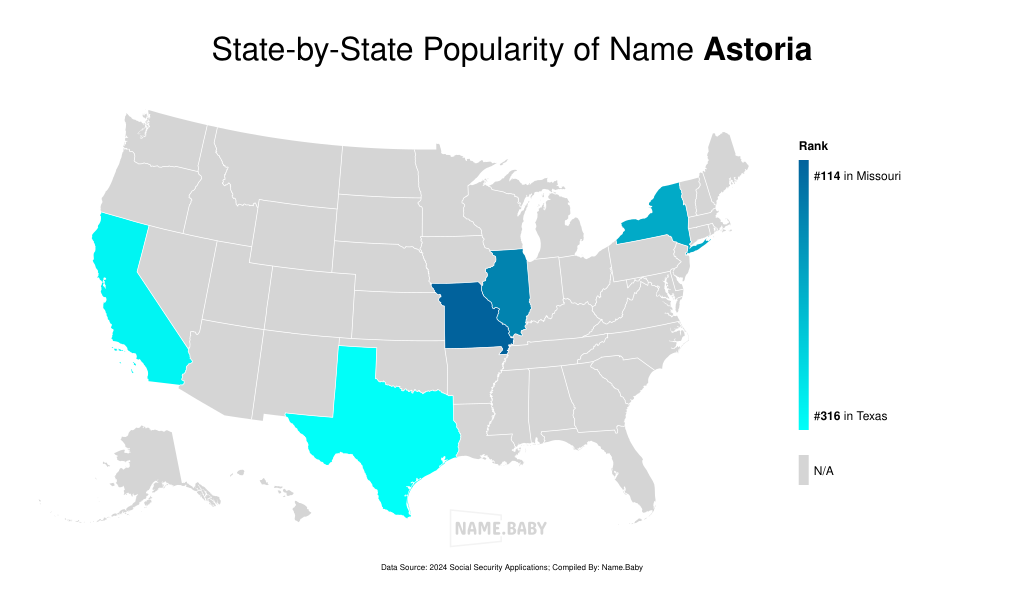 Astoria—Italian ah-STAW-ree-ah, English as-TOR-ee-uh—traces its lineage to the Astor dynasty and, further back, to Latin astur, “hawk.” First attached to the trading post that became Astoria, Oregon, and later to the New York neighborhood and the Waldorf-Astoria hotel, the word has long moved through American headlines and transatlantic travel guides. Literary and cinematic nods—most notably Astoria Greengrass in the Harry Potter universe and the coastal backdrop of The Goonies—extend its reach into popular culture. In U.S. birth records it has hovered in the lower half of the Top 1,000 since the mid-1990s, climbing to 98 registrations in 2024, a pattern that signals distinctiveness without obscurity. With its brisk Latinate rhythm, subtle “hawk” imagery, and cosmopolitan place-name aura, Astoria offers parents a modern yet historically rooted choice for a daughter.