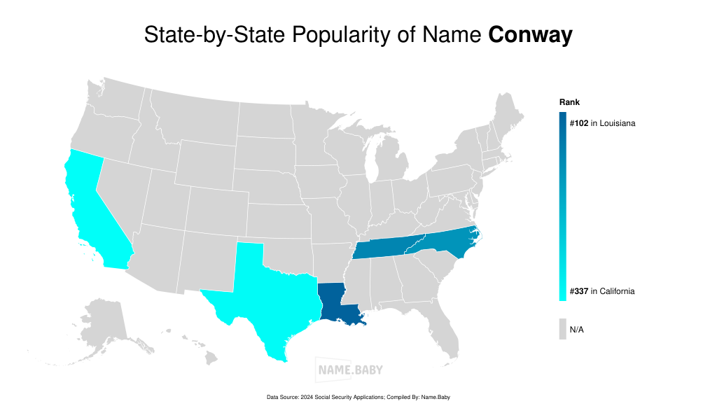 Conway began life as a surname, braided from two Celtic sources: the Irish Conbhuidhe, often glossed as “yellow hound,” and the Welsh place-name Conwy, a river whose medieval monks dubbed it “holy.” Migrating across the Atlantic in the 18th and 19th centuries, it settled into Anglo-American use as a given name, where its crisp, two-syllable cadence and uncommon initial C have kept it quietly distinctive—never wildly popular, yet perennially present on U.S. birth records since the early 1900s. Historians may think first of the British statesman Henry Seymour Conway; country-music fans counter with the stage name of Harold “Conway Twitty.” Together these touchpoints lend the name a low-key versatility: a dash of scholarly gravitas, a hint of southern twang, and an undercurrent of Celtic ruggedness, all packaged in the straightforward KAHN-way pronunciation.
