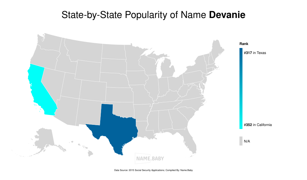 Devanie, pronounced deh-VAN-ee, is a quietly intricate choice whose etymology threads through more than one map: linguists often cite the Irish surname Ó Duibheannaigh—rendered Devaney in English and roughly meaning “descendant of the dark-haired one”—while modern naming patterns read it as a lyrical, feminine offshoot of Devon, the pastoral county on England’s southwest coast. Either way, its three rhythmic syllables carry a measured elegance, rising and settling like the languid notes of a santur drifting across a Shirazi courtyard. In Texas birth records, Devanie appears just often enough to reassure analysts that rarity still has a heartbeat—hovering around the 300-mark in most years without ever threatening to become commonplace. Parents drawn to it tend to value its equilibrium: approachable yet subtly exotic, traditional in sound but free of historical baggage. Devanie thus wears the quiet confidence of a traveler who knows both the emerald mists of Galway and the saffron twilight of Isfahan, inviting a second glance and, quite possibly, a story.