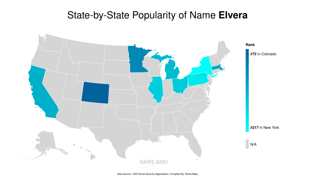 Elvera, a feminine appellation of Germanic provenance, derives from the Old High German elements al (“all”) and wer (“true”), thereby conveying the meaning “entirely truthful.” As a vernacular variant of Elvira, it imparts an air of measured fortitude and refined reserve that found modest favor among Anglo-American families in the early twentieth century, notably within Michigan’s birth registers where it appeared intermittently and achieved its highest placement—rank ninety-six—in 1912. Though its usage declined in subsequent decades, the name’s sustained presence in historical records attests to its enduring, if understated, appeal. Its pronunciation—el-VEER-uh (/ɛlˈvɪrə/)—reflects the phonetic consistency characteristic of classical English feminine names. In modern contexts, Elvera evokes associations of integrity, poise, and scholarly gravitas, offering a distinctive choice for those drawn to names that balance vintage charm with academic elegance.