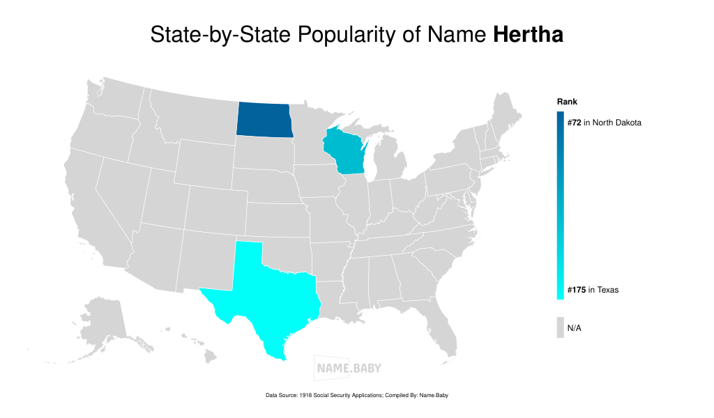Hertha, pronounced HEHR-tah (/ˈhɛʁ.ta/), emerges from the fertile loam of Germanic myth as a homage to Nerthus, the primordial goddess lauded by Tacitus in his Germania, whose cultic rites evoke the inseparable bond between humanity and terra mater. Rooted in the Proto-Germanic *erþō, this name conjures the pulsing heartbeat of the earth, unfurling in the cultural imagination like the first green shoot breaking through winter’s frost. In Wisconsin’s early twentieth-century birth registers, Hertha glimmered with quiet persistence—five to eight occurrences annually from 1915 to 1918, peaking at rank 119—attesting to its fleeting yet enduring appeal. With its sonorous consonants and open, mellifluous vowel, Hertha bestows upon its bearer an aura of classical gravitas and nurturing vitality, inviting a legacy of strength, renewal and verdant promise.