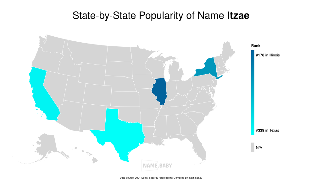 Itzae, pronounced eet-SAH-eh, comes from the Yucatec Maya of Mexico’s Yucatán Peninsula and is commonly interpreted as “gift of God,” an echo of the ancient Itza’ people whose name signified wisdom and water in Maya lore. Used for boys and girls alike, the name links contemporary parents to a vibrant Maya heritage that also inspired kindred names such as Itzel and Ixchel. In the United States, Itzae has maintained a low-key but steady presence: annual births have ranged from 52 to 105 over the past dozen years, keeping the name in the mid-800s on the national chart and signaling a niche appeal among families seeking a culturally resonant alternative to more familiar Spanish-language choices. The pronunciation’s crisp glottal stop and open vowels preserve its indigenous character, while the meaning offers a positive, almost celebratory message that travels well across languages and borders.