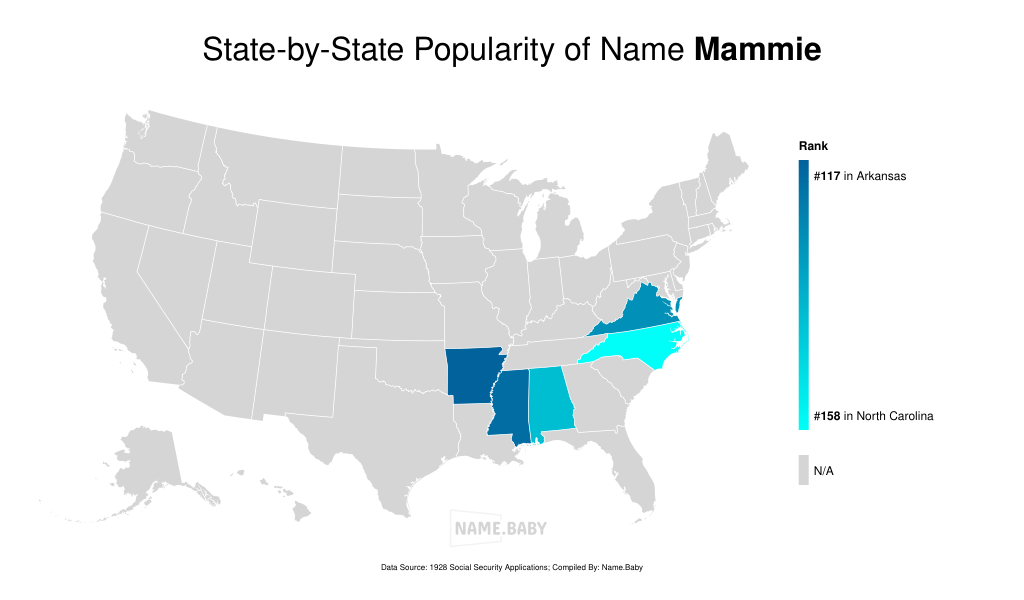 Mammie is a charming and vintage name of English origin, derived from the more formal name Mary. It carries a sweet and endearing quality, making it a popular choice for baby girls in the early 20th century. The name Mammie is pronounced as "MAM-ee" (/ˈmæmi/) and has variations such as Mamie. While its usage has declined in recent years, its historical popularity is evident from the data for newborns in Virginia, with occurrences noted in the early 1900s. This name exudes warmth and familiarity, making it an appealing option for parents seeking a timeless and classic name for their daughter.