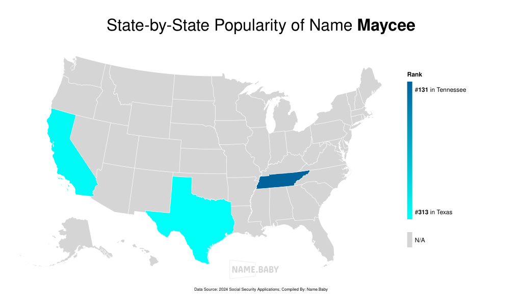 Maycee is the breezy, double-e cousin of Macy—a modern spin on a medieval French surname (de Massy) that once marked families from a lush corner of Normandy. Over time, that place-name morphed into the friendly Macy we know, and Maycee adds a splash of contemporary flair, nestling the upbeat month of May right up front for a whisper of springtime optimism. Parents who like familiar sounds but crave a touch of individuality love that Maycee looks fresh on paper yet rolls off the tongue exactly like classic “MAY-see.” She’s hovered steadily in the U.S. Top 1000 since the early ’90s, usually in the comfortable high-700s to low-900s—popular enough to feel recognized, rare enough to remain special in a classroom roll call. Think of Maycee as equal parts sunshine and spunk: a name that can twirl in a tutu, ace a science fair, and still feel boardroom-ready when adulthood arrives.
