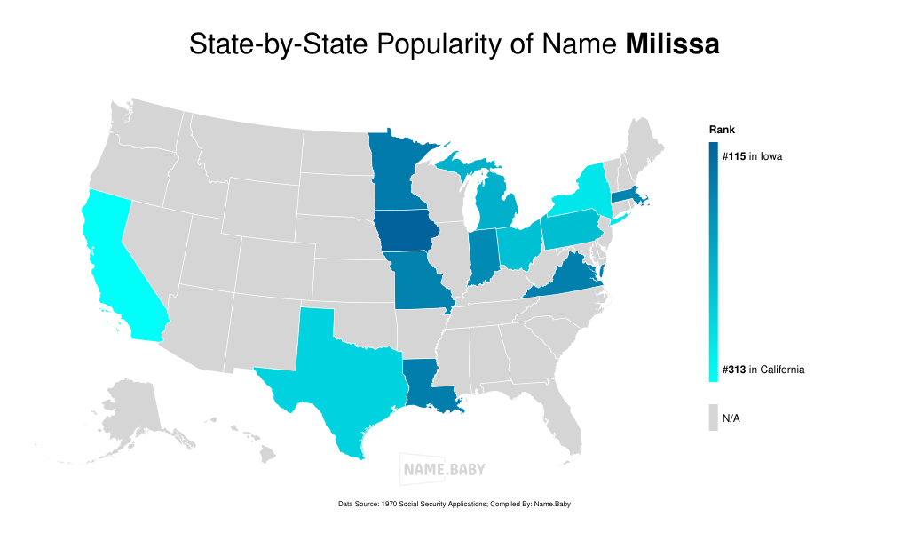 The name Milissa, predominantly assigned to female individuals, represents an orthographic variation of the classical Greek appellation Melissa, itself derived from the ancient Greek melissē (μελίσση) “honey bee” and transmitted through Latin usage; this etymological lineage conveys connotations of industriousness, natural sweetness and a subtle connection to pastoral imagery. Phonetically, it is articulated in contemporary English as muh-LISS-uh (/məˈlɪsə/), featuring a trochaic stress pattern on the second syllable. In demographic terms, Milissa maintained a modest yet consistent presence among Louisiana newborns between 1964 and 1970, with annual occurrences ranging from five to eleven and rankings oscillating between 136th and 156th place. Within the broader Anglo-American cultural sphere, its restrained adoption affords bearers a measure of understated distinctiveness grounded in both classical heritage and technical precision.