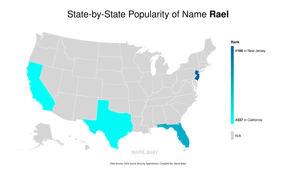 Pronounced RAYL, Rael is a concise masculine given name of Hebrew origin that likely derives from Israel, carrying the sense of “God’s shepherd” or “divine guide.” Its straightforward sound and single-syllable form lend a crisp authority balanced by an understated warmth, suggesting reliability and quiet confidence. Unlike more common biblical names, Rael has maintained a modest presence in the United States, with occasional upticks in usage—most recently 61 newborns in 2024, ranking it 863rd—reflecting its appeal to parents seeking something distinctive yet familiar. The name also figures in modern cultural reference as the chosen pseudonym of Claude Vorilhon, founder of the Raelian spiritual movement, and turns up sporadically in contemporary literature and music. While it has never threatened the top of the charts, Rael’s steady, niche appeal ensures it remains a memorable choice for a boy whose parents value both tradition and originality.