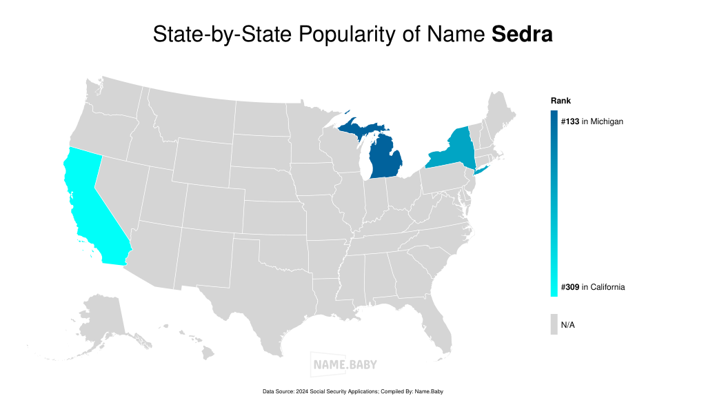 Sedra is an elegant female name with Arabic roots, conjuring the graceful image of the lote tree—a timeless symbol of endurance and serenity in classical lore. Pronounced SEH-drah in Arabic (/ˈsɛdɹa/) and SEH-druh in English (/ˈsɛdɹə/), it ripples off the lips like a softly sung melody. Though still delightfully uncommon—rising gently from 33 newborn Sedras in 2023 to 41 in 2024, placing it around rank 909 in U.S. popularity—Sedra is the kind of name that doesn’t need neon signs to stand out; its quiet confidence does the work. Balancing exotic allure with everyday ease, it offers young bearers a sense of rooted strength and boundless possibility. For those dreaming of a name that feels like a promise of bravery and grace, Sedra stands ready to inspire each new chapter.