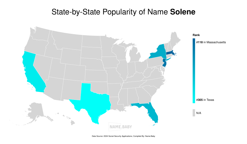 Pronounced in French as soh-LEHN (/səˈlɛn/), Solene is a feminine name of French origin rooted in the Latin sollemnis, meaning “solemn” or “ceremonial.” Historically tied to liturgical observances and tradition in Francophone regions, the name carries a tone of classical dignity. In the United States, Solene first appeared in Social Security records around 2000 with seven births at rank 893, then hovered in the high 900s during the early 2010s. Since then, it has steadily gained traction, reaching 116 U.S. births and rank 834 in 2024, underscoring its growing appeal to parents drawn to a name that blends European cultural heritage with enduring resonance.