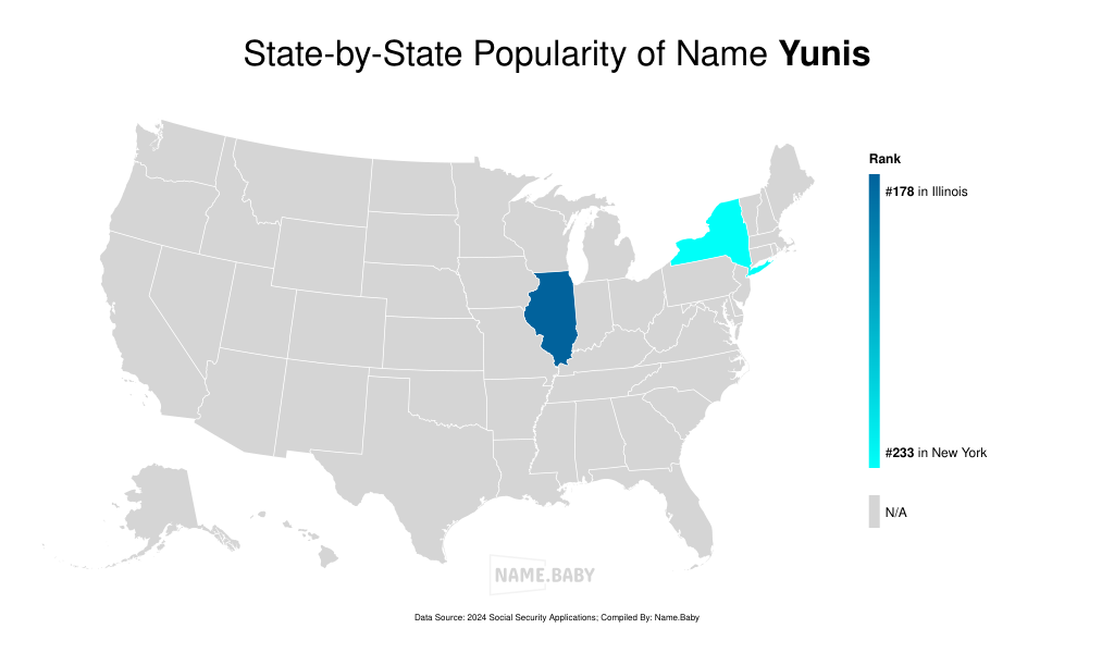 Yunis is a masculine appellation of Arabic provenance, phonetically articulated /juː.niːs/, representing an alternative transliteration of Yunus—cognate with the Hebrew Yonah and the English Jonah—literally denoting “dove.” Its primary historical resonance derives from the figure of the prophet Yunus in Islamic tradition, whose narrative of deliverance from the depths of the sea parallels that of the Judeo-Christian Jonah, thereby endowing the name with connotations of perseverance and spiritual renewal. In the United States, Yunis has maintained a modest yet consistent presence in newborn name statistics—recording thirty-eight occurrences (ranked 886th) in 2024—reflecting a gradual stabilization among parents who seek names that balance classical resonance with cross-cultural clarity. The name’s succinct, two-syllable structure, together with its rich theological and linguistic heritage, renders it particularly suited to anglophone families valuing both phonetic precision and historical gravitas.